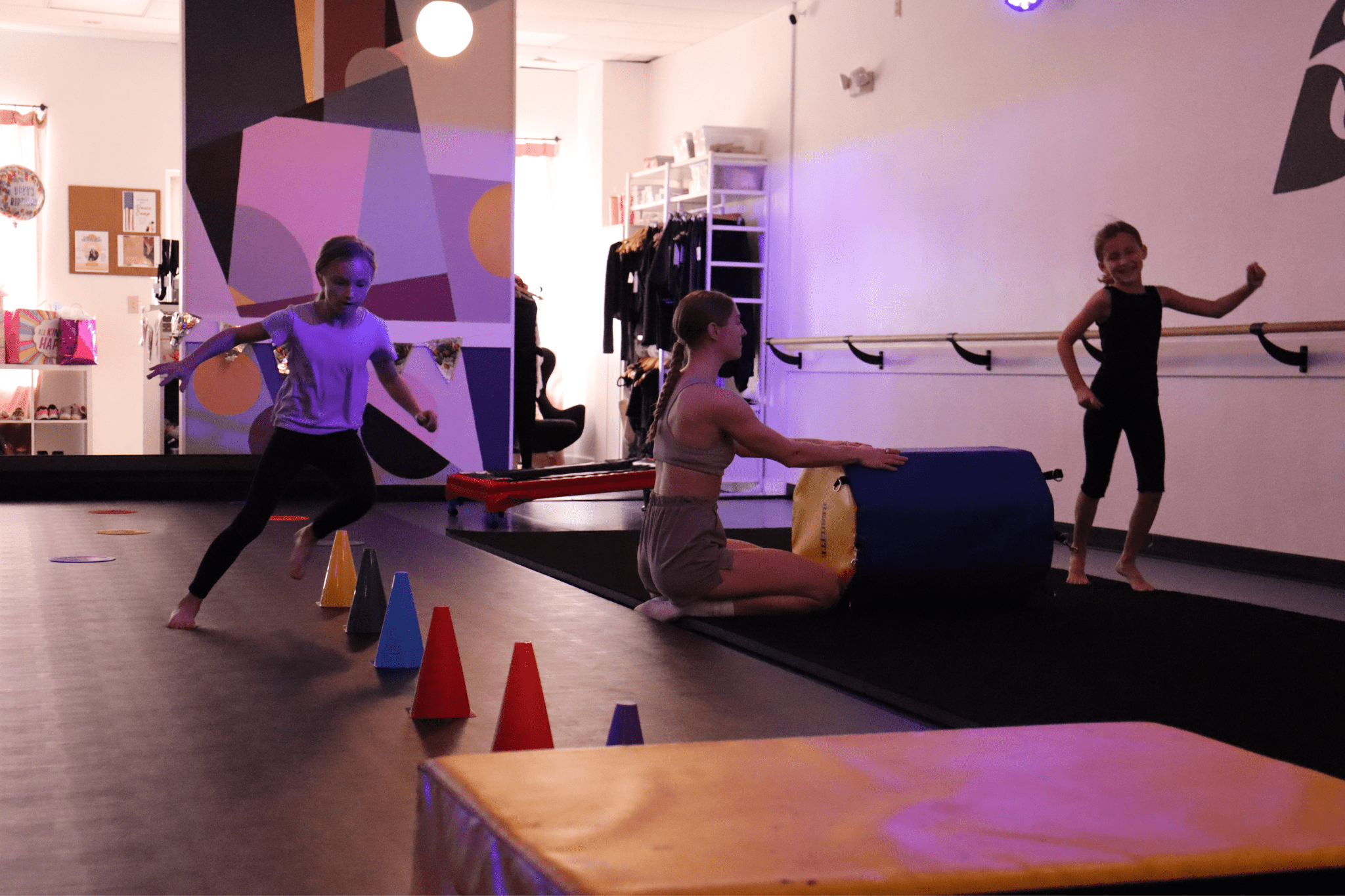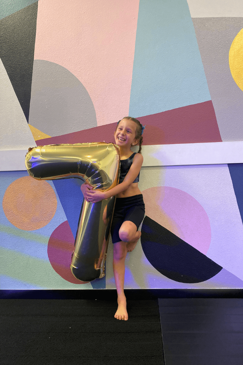 We even offer “mom and me” style classes for baby birthday parties! Use of the studio space including acrobatic props, party lights, mats, trampolines, and other items are included.